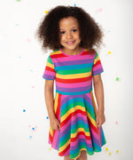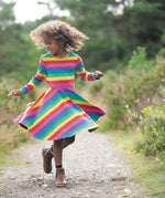 Frugi Foxglove Rainbow Stripe Sofia Skater Dress