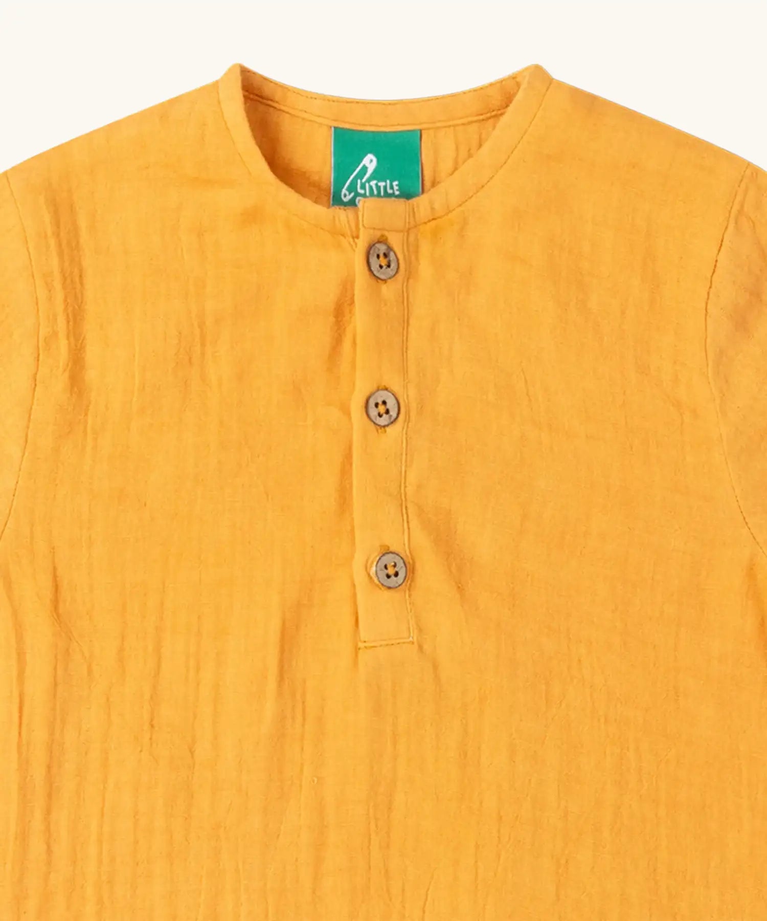 Little Green Radicals Organic Cotton Muslin Henley Top - Golden Ochre