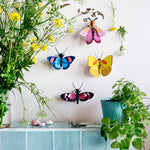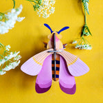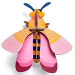 This eco wall decoration, is made from recycled cardboard and printed with plant-based inks. This stunning insect wall art model has a stylish, contemporary look, with stylised lines and brightly coloured in shades of pink with yellow and blue wing details. Studio ROOF models make a great introduction to the wonderful world of insects. This impressive wall decoration will make a statement in any room of the house!