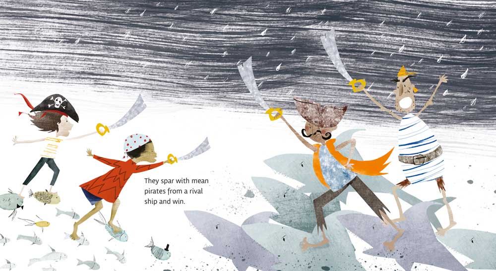 Love how Sam and Agu, start of unsure of one another and then get to know each other and transform the tree into a pirate ship and share a big adventure together.