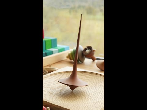 Tall and elegant, the Mader Trumpo spinning top is a beautiful handmade wooden spinner toy made from a single piece of locally sourced hardwood. The Trumpo is made in a variety of light and dark woods chosen at random.
