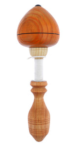 A large robust fast spinning top with a metal tip and pull string, designed to be used on all surfaces including outdoors. Wind it up, push the starter cap down gently, pull the string and watch it take off spinning and bouncing across even rough surfaces. You can pick it up mid spin and throw it around and it just keeps on going! This one comes in a lovely orange stain with natural wood starter cap.