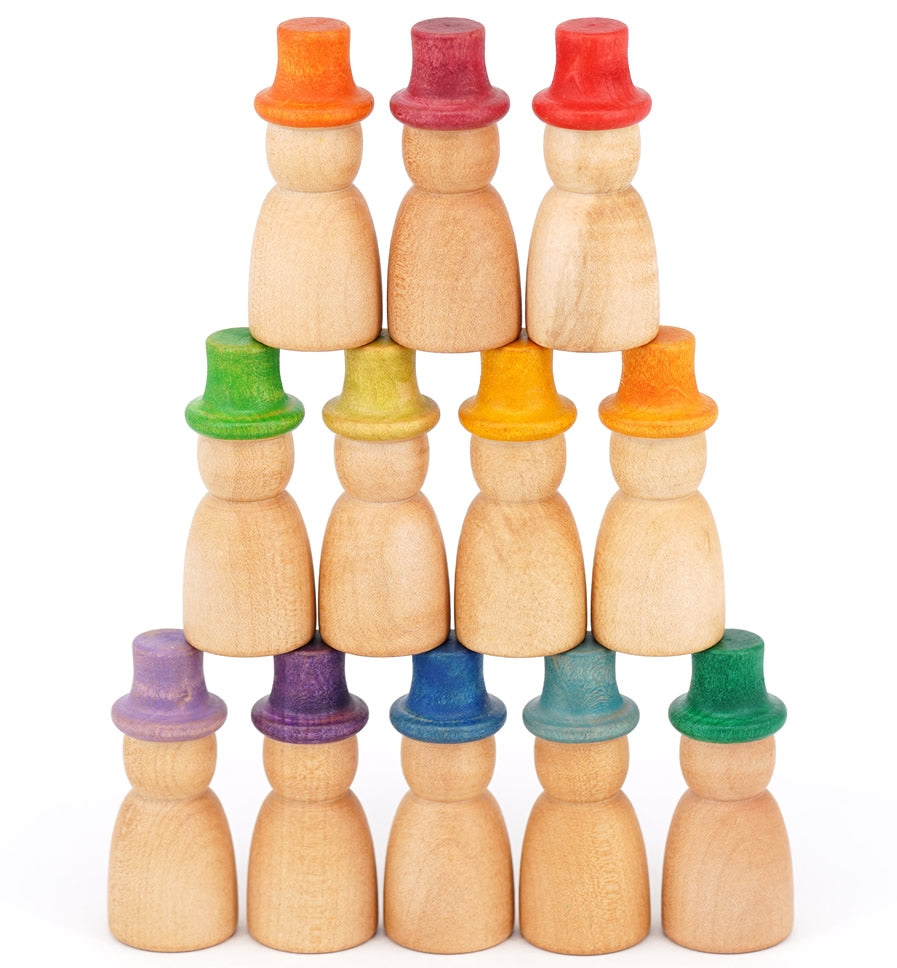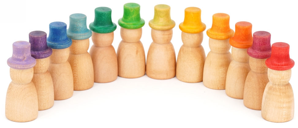 This Grapat limited edition set includes 12 Magos® with natural wood bodies and rainbow coloured hats