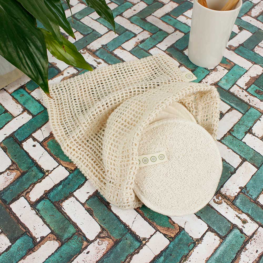 The bathroom is always a great place if you're starting out a zero-waste journey, and as a natural product made from GOTS certified organic cotton, these reusable round face pads take about 6 months to biodegrade, so at the end of it's life - cut up the pads and add them to the compost bin.