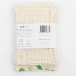 Made from GOTS organic cotton on the printed side and a textured organic cotton plain sided with an extra waffle overlay fabric - the rougher side of this natural textured kitchen scrub is perfect for a more abrasive clean on stubborn areas like the hob, oven, and tackle the shower grouting. Simply wring out the excess moisture out the eco sponge when done with scrubbing and allow to air dry.