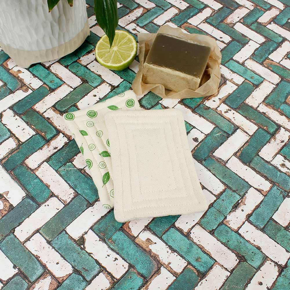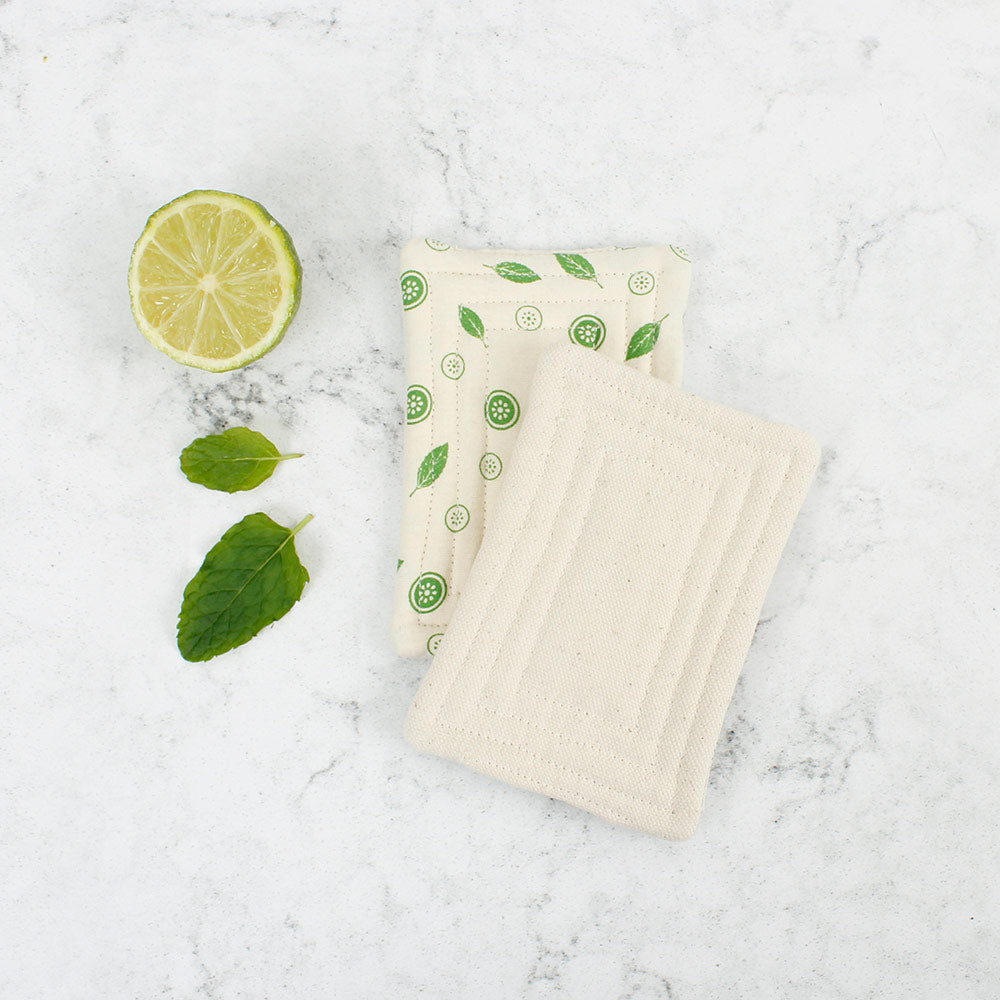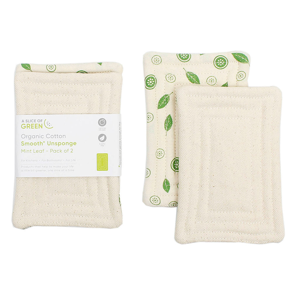 These 2 pack of Organic Cotton household Smooth Unsponge by A Slice of Green are a low waste and plastic free way of cleaning the household, ideal for multi-surface cleaning. With a gorgeous mint leaf design on the outer side, switch the single-use plastic sponges and scourers for a natural reusable kitchen & bathroom cleaning cloth.