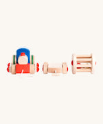 Bajo children's pull along musical train toy laid out on a white background