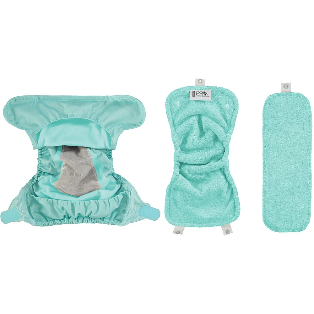 The same Pop-in nappy we know and love with a few little improvements in this latest Version 2. Hidden washing tabs, improved sizing and more comfortable popper system... oh and some great new colours too! The Pop-in nappy has super thirsty absorbent bamboo soakers which popper into place inside the clever waterproof outer cover. The outer cover has a double leg gusset which is excellent at containing mess and absorbent soakers unpopper for fast drying. Such a great nappy, the Pop-in is simple to use and really absorbent.