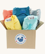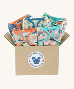 The Pop-in Nappy fits from birth to potty using sizing poppers on the front. Stretchy tabs and double leg gusset offer the best fit and leak protection we've ever seen!
