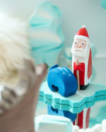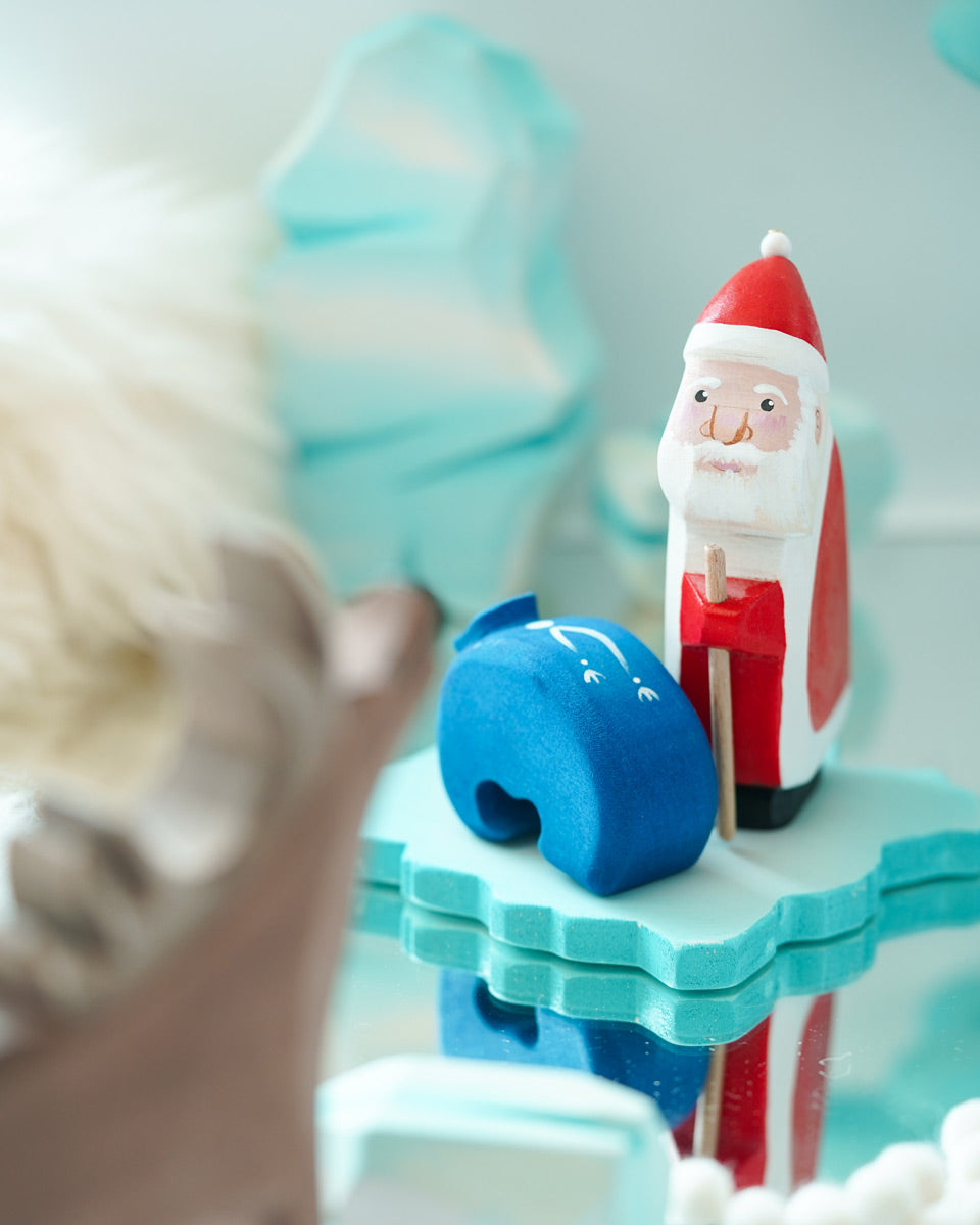Close up of a Bumbu Santa Claus toy stood on a Bumbu ice floe block