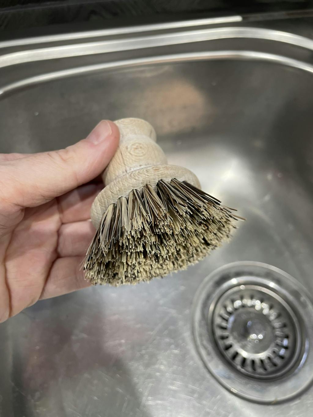 Washing the dishes is easy with an Ecoliving Wooden Pot Brush, made from sustainably sourced certified beech wood, and stiff union fibre bristles. This handmade natural brush is perfect for scrubbing pots and pans and removing stubborn stains from hard surfaces throughout your home. Easy to use and comfortable to hold in the palm of your hand. This household brush has natural bristles so scrubbing the sink won't result in any microplastics from entering waterways and the ocean. Allow the brush to dry out between uses.
