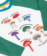 This kids' raglan long-sleeved top has a lovely embroidered design featuring different species of mushrooms, perfect for little nature lovers. With a white body and forest green sleeves, this top is made from 100% GOTS-Certified organic cotton, and has popper fastenings on sizes up to 4 years for easy-peasy dressing.