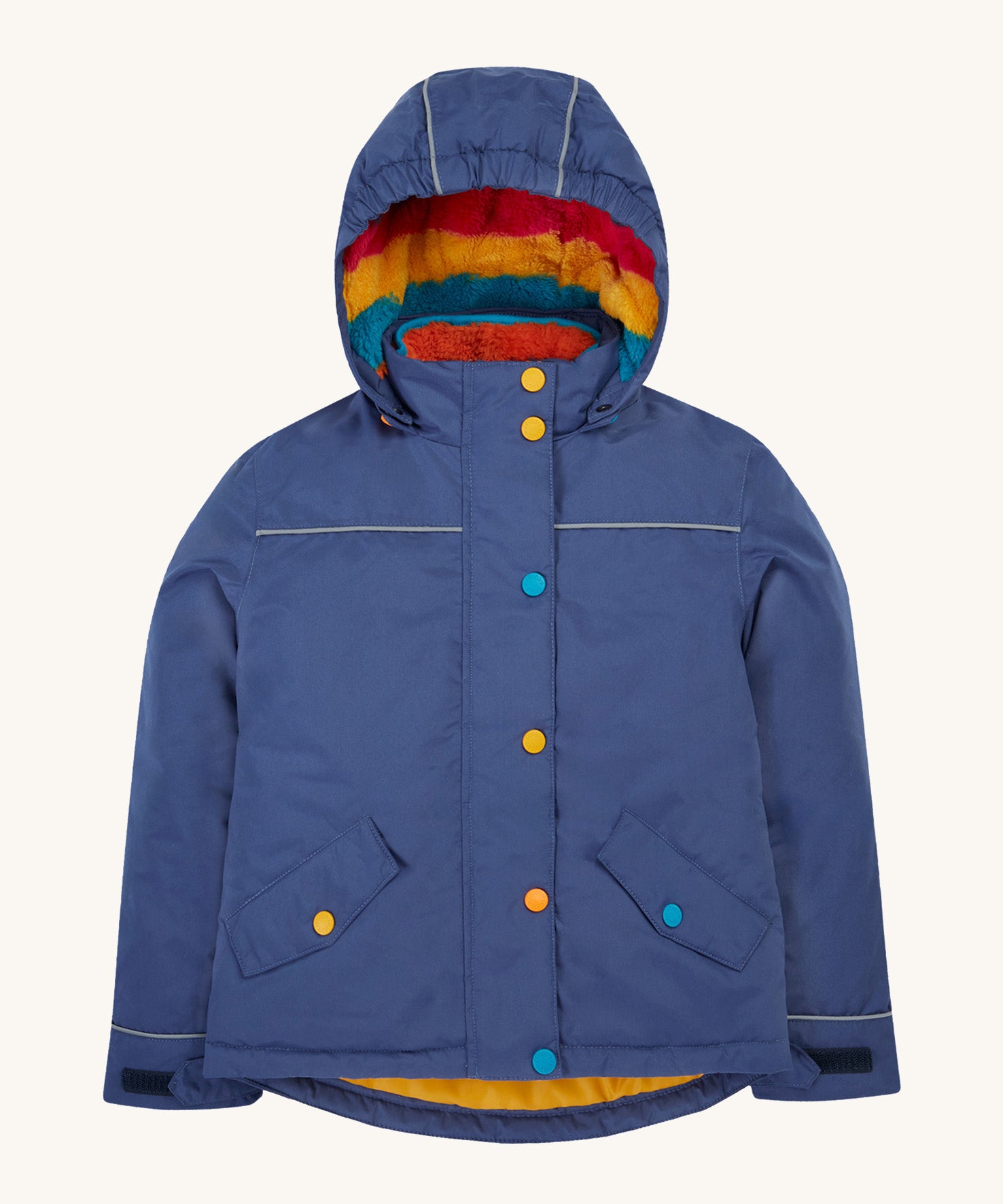 Absolutely love this coat; waterproof, warm, vibrant colours, versatile! My daughter loves the cosiness & the treasures pocket. My only regret is that I’ve only just found these coats and we are in the last size option.