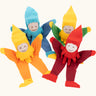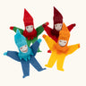 These irresistible jolly felt gnomes are so much fun as they tumble down slopes doing somersaults! This small gnome is a playful felt character wearing a colourful wool felt outfit and containing a ball bearing to make it roly-poly down a slope. Colour is chosen at random.