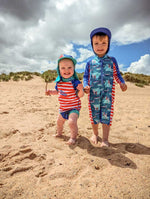 We love the bright patterns on these toddler sun suits which match up with a whole load of other baby and toddler essentials from Close Parent. Team up with a matching swim nappy and sun hat. Sustainability is more than a buzzword at Close Pop-in. All products are ethically made under fair conditions and Pop-in reusable swim nappies are great at keeping single use disposables out of landfill. Close are now members of 1% For The Planet and will donate 1% of the sale from products with endangered animal print designs to WWF and the Marine Conservation Society, making this environmentally-friendly brand more eco than ever. Hurrah for top baby and children's swimwear with super ethics!