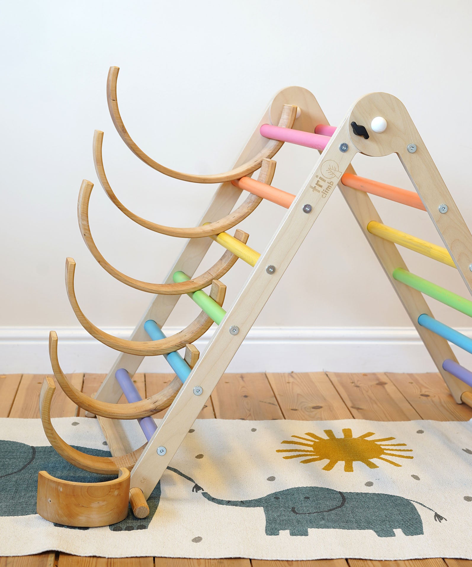 Created by Christine Dunford, combining outstanding design, build quality and attention to detail. Triclimb adheres to the principles of Dr. Emmi Pikler while meeting rigorous worldwide toy safety standards. Triclimb represents the best of this type of play equipment, safe, strong, and designed for real family life.