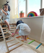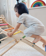 A classic climbing triangle with a modern twist. Its primary function is to aid climbing and encourage movement in young children but Triclimb is so much more than that. Triclimb features a wonderfully simple but Innovative design which gives it a graphical purity both when poised and ready for play or when folded for storage. An open ended developmental toy that’s not just for climbing, simultaneously encouraging play, movement and expression.