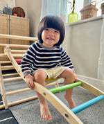 An additional challenge for your little climbers. The Wibli ladder is an undulating curvy ladder that attaches securely to the rungs of your Triclimb reducing the climbing angle and increasing the difficulty. Wibli now comes with sleeker integrated V2 joint system.