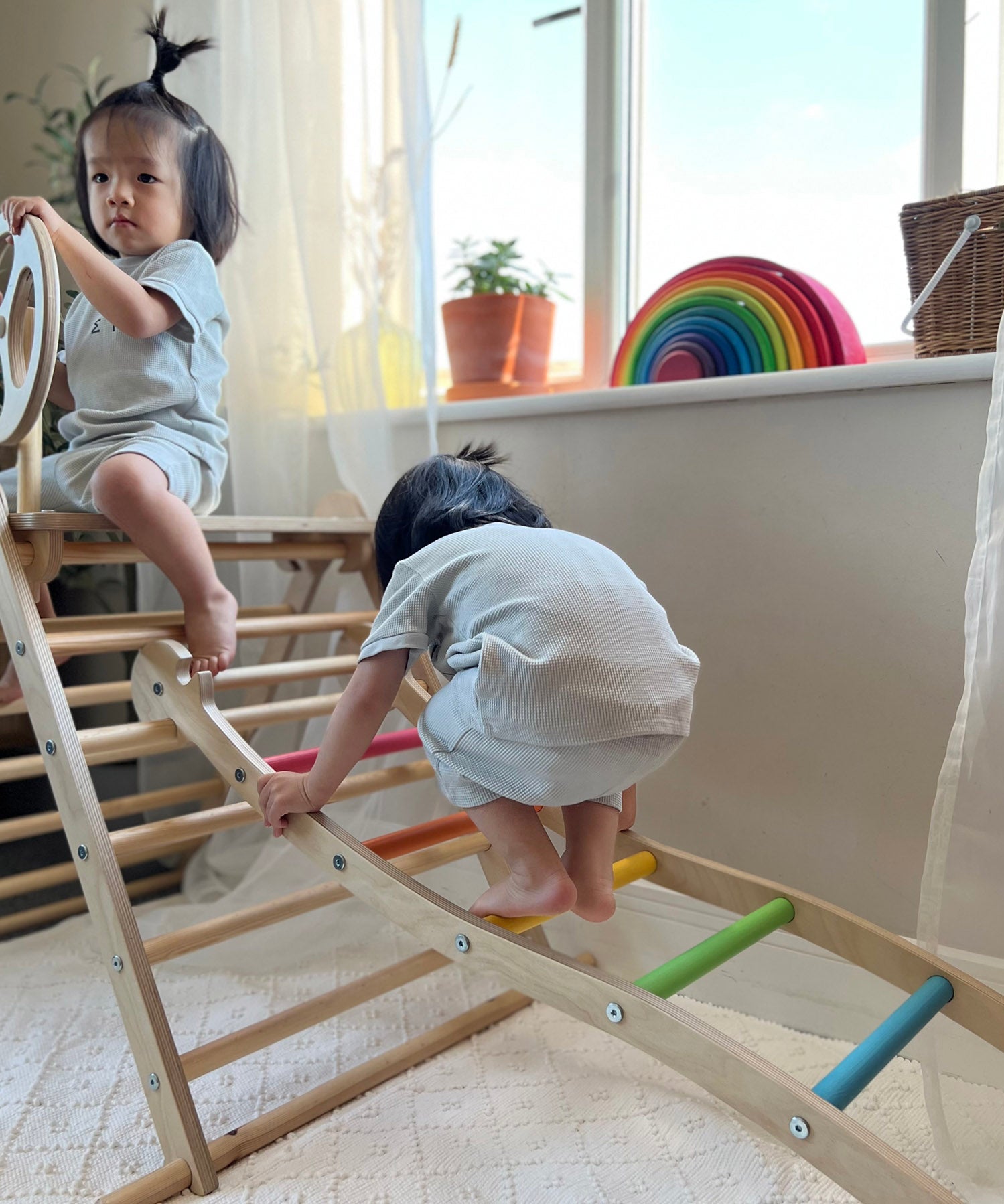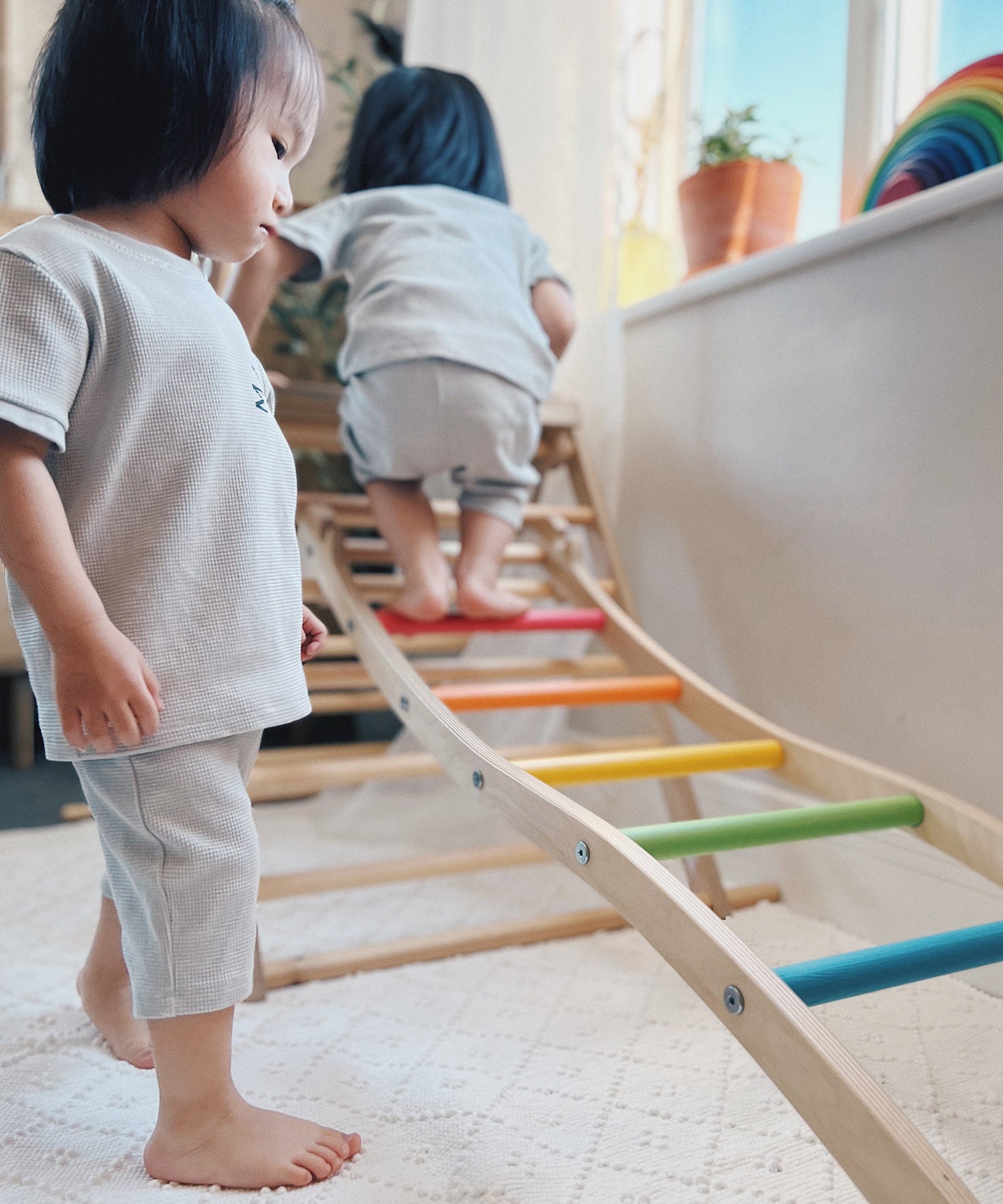 Peter and Jolene were always getting asked when they were going to stock a Pikler style climbing frame, and so after searching high and low and not finding one that met their standards, they started the journey to find a designer who could bring a modern version of the Pikler triangle to life. The origins of the Pikler triangle climbing frame come from Emmi Pikler a Hungarian Paediatrician who pioneered theories on child development in the 1930/40s. Centered around a respectful relationship between infant and parent as well as natural progression of motor development through free movement and play. Emmi Pikler believed it was important to offer children the opportunities to move naturally according to their inherent ability.