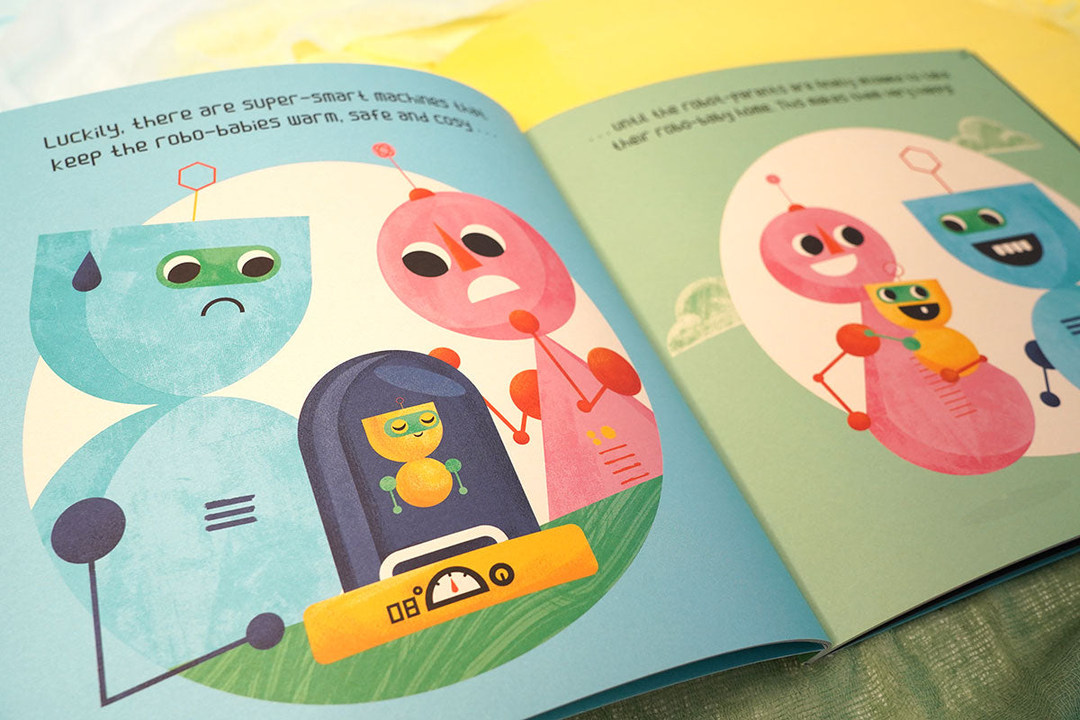 This is a story about the many ways in which babies arrive into their families, including IVF, donor conception, surrogacy and adoption. Robo-babies is a magical story that explains in simple terms the different ways in which babies arrive into the world. This is a warm and gentle story for preschool children introducing the different ways in which families are formed, it can sometimes be a complicated path but this book aims to normalise the many different way babies can meet their families. The robot families in this book meet their babies, of all shapes and sizes, in different ways, with the whole range of emotions that are entwined with a new baby.