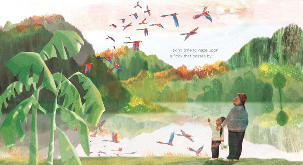 This is such a beautifully illustrated and worded book! The message is gentle but clear in encouraging the reader to practise mindfulness and appreciate the beauty all around us. I love that it shows people from various countries and cultures. While the pictures are inspired by a particular place and/or way of life, we can easily apply it to our daily living here too!