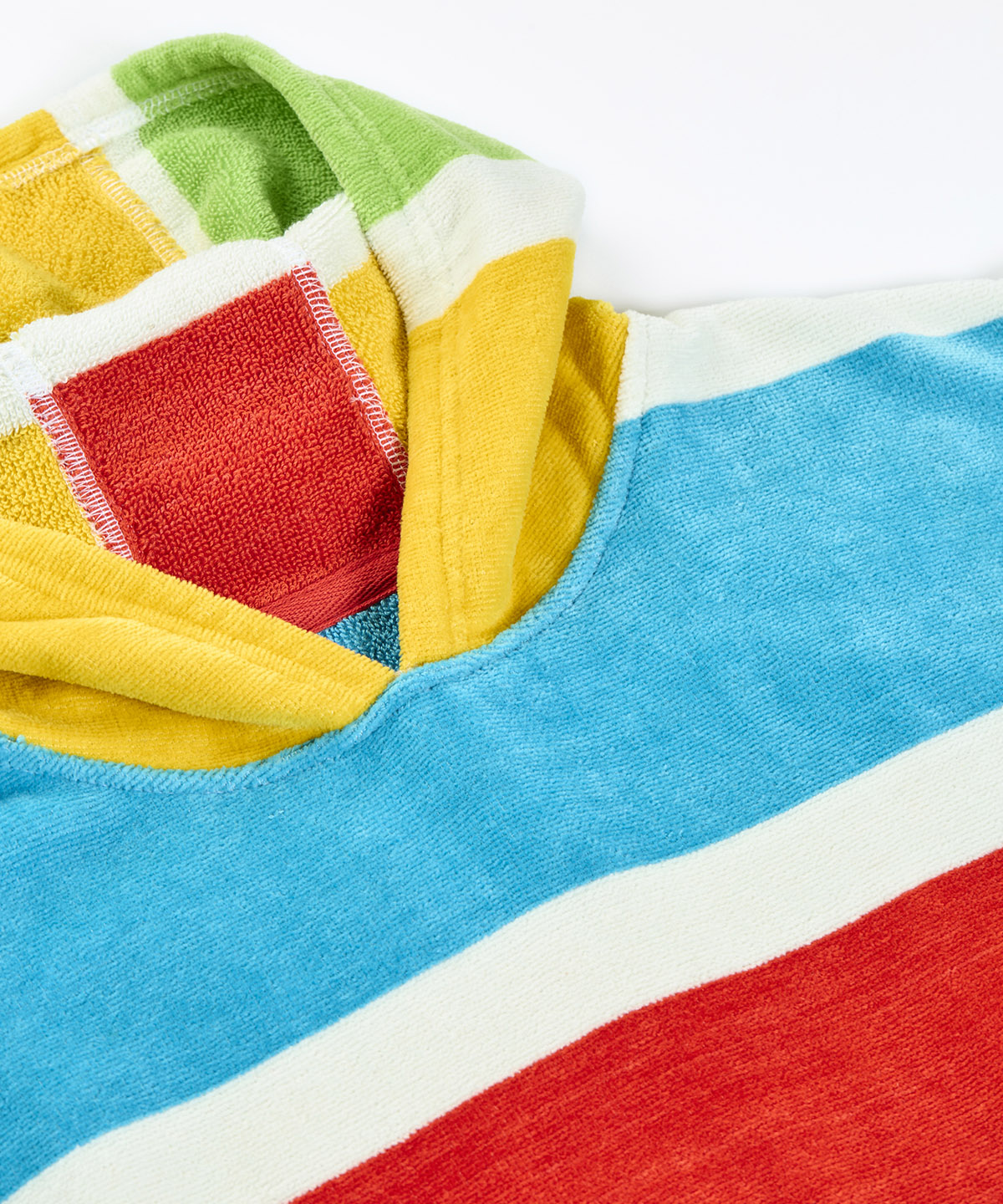 The chunky rainbow candy stripe design is woven into the fabric using a jacquard technique. Easy to slip on, it’s a practical alternative to wrapping up in a standard towel when kids are tired, cold, or dripping wet.