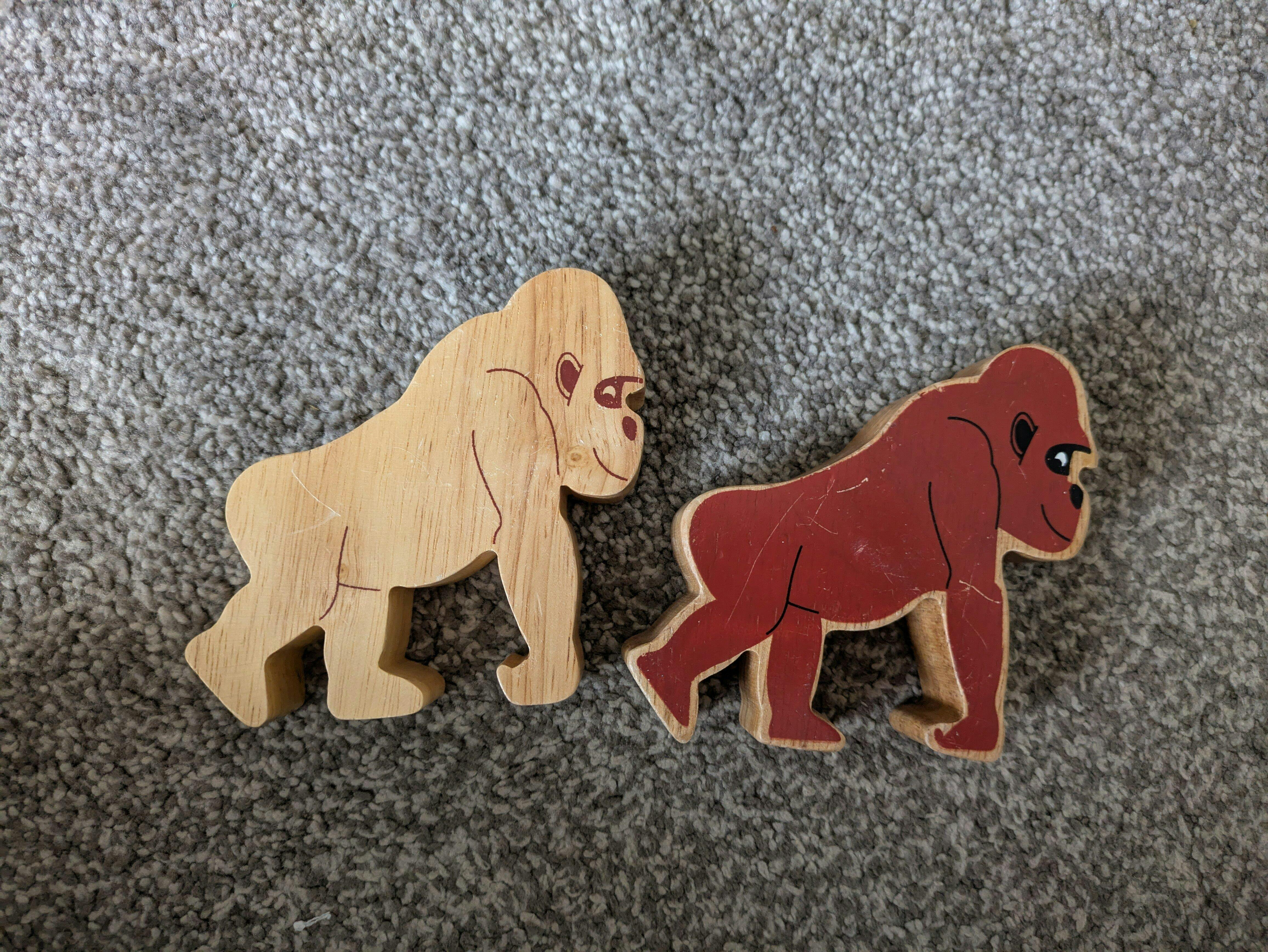 This Lanka Kade Brown Gorilla is a grizzly painted wooden figure and perfect for a wild animal collection. This brown wooden gorilla will delight small children and will make a fun new addition to a set of wooden animals. This figure has been hand-crafted from sustainably managed rubberwood and has been painted on the back and front, adding gorgeous details while still showing off the natural beauty of the wood around the side. This fair trade wooden animal figure is perfect for teaming up with other farmyard animals from the range. Lanka Kade painted figures are hand painted in lovely bright colours.