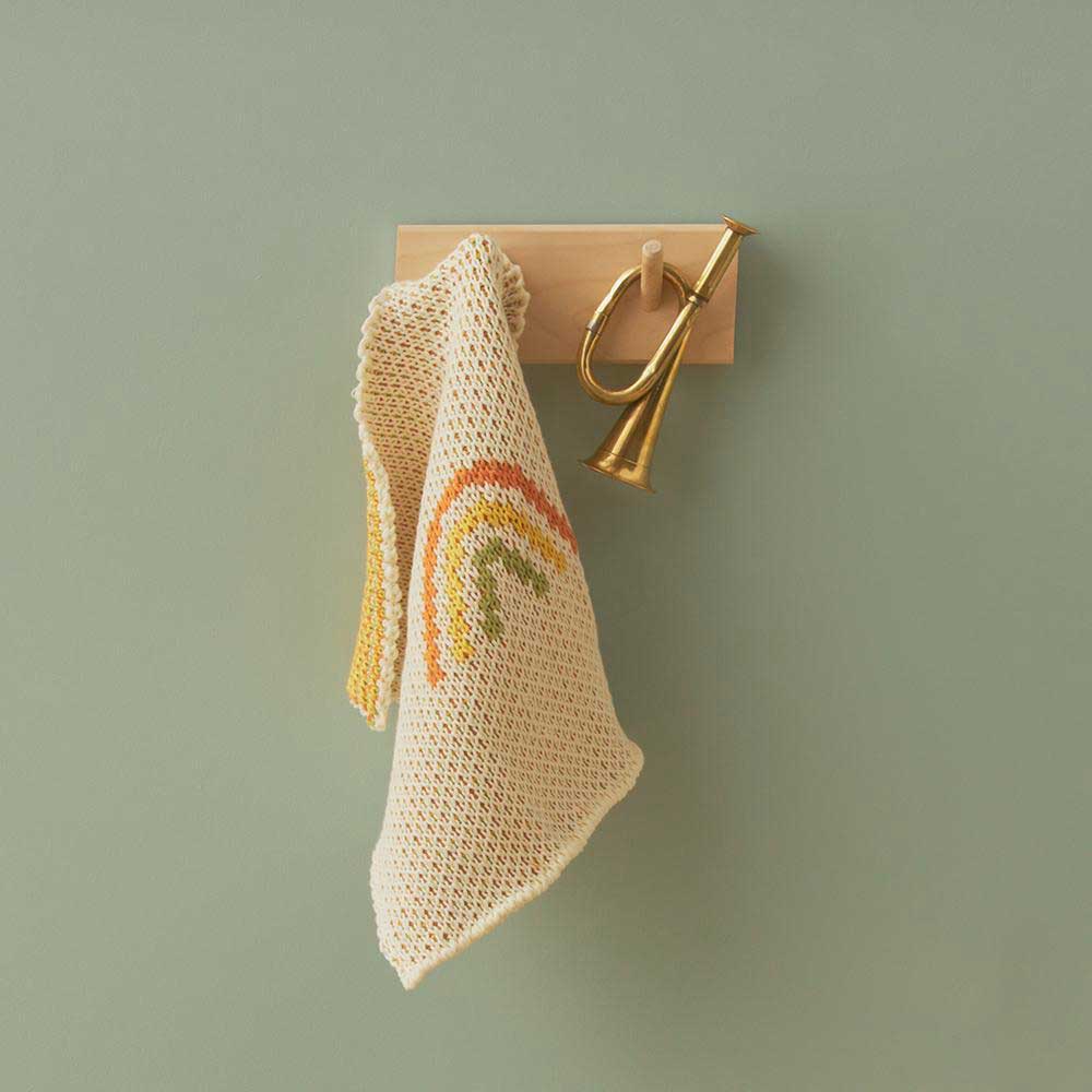 This adorable Dinkum Doll Rainbow Blanket by Olli Ella is a sweet and snuggly reversible Doll blanket with the Dinkum Doll Rainbow knitted into it. Made from 100% cotton, this knitted dolls blanket is cream on one side with a rainbow in the centre and a peach, mustard and sage green herringbone knit pattern on the reverse. Children will love tucking their Dinkum Doll up for the night with their very own blanket, or keeping them warm while out and about in their Strolley. Team up this wooden toy bottle with the Dinkum Doll feeding set and pyjama set at Babipur. This natural toy is perfect for children who enjoy engaging in imitative play.
