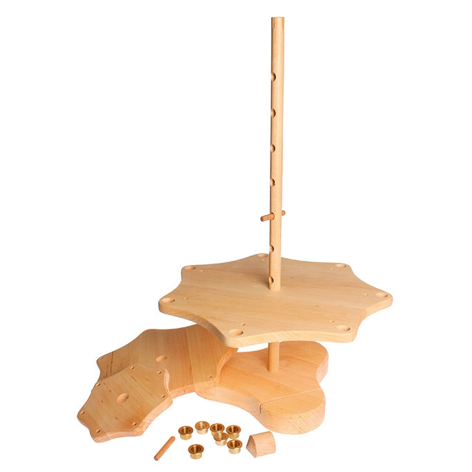 Célébrez n'importe quelle occasion spéciale avec ce support de fête saisonnière de Grimm's - c'est une alternative verticale à un anneau Waldorf, une spirale de célébration ou une table nature. Ce support à quatre niveaux est parfait pour exposer une photo ou une carte postale, des personnages décoratifs, des trésors de la nature tels que des fleurs, des feuilles, des baies et des châtaignes. Il y a des emplacements pour les bougeoirs et sept bougeoirs en laiton sont inclus. Variez la hauteur des couches pour que tous vos trésors s'adaptent, et les couches peuvent également être retirées afin de pouvoir être utilisées pour contenir une couronne de l'Avent. Des bougies mesurant 1,4 cm de diamètre s'adapteront aux bougeoirs de cette bague.