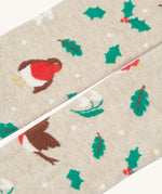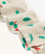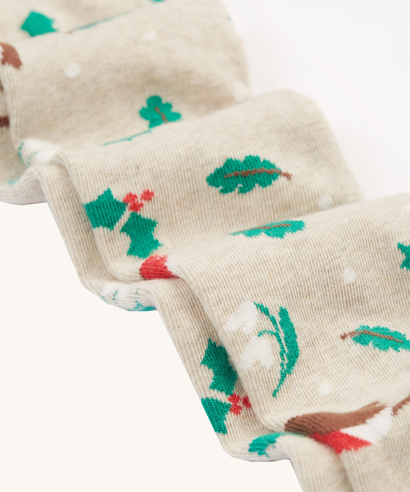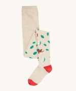 Ce lot de deux collants tricotés Norah de Frugi au motif rouge-gorge avoine/rouge est fabriqué en coton biologique avec une touche d'élasthanne pour ajouter plus d'élasticité et de confort. Dans un beige clair avec des petits rouges-gorges, des perce-neige et des feuilles de houx, ces collants biologiques Les collants pour enfants sont un incontournable de la garde-robe et sont conçus pour être assortis aux autres articles Frugi.