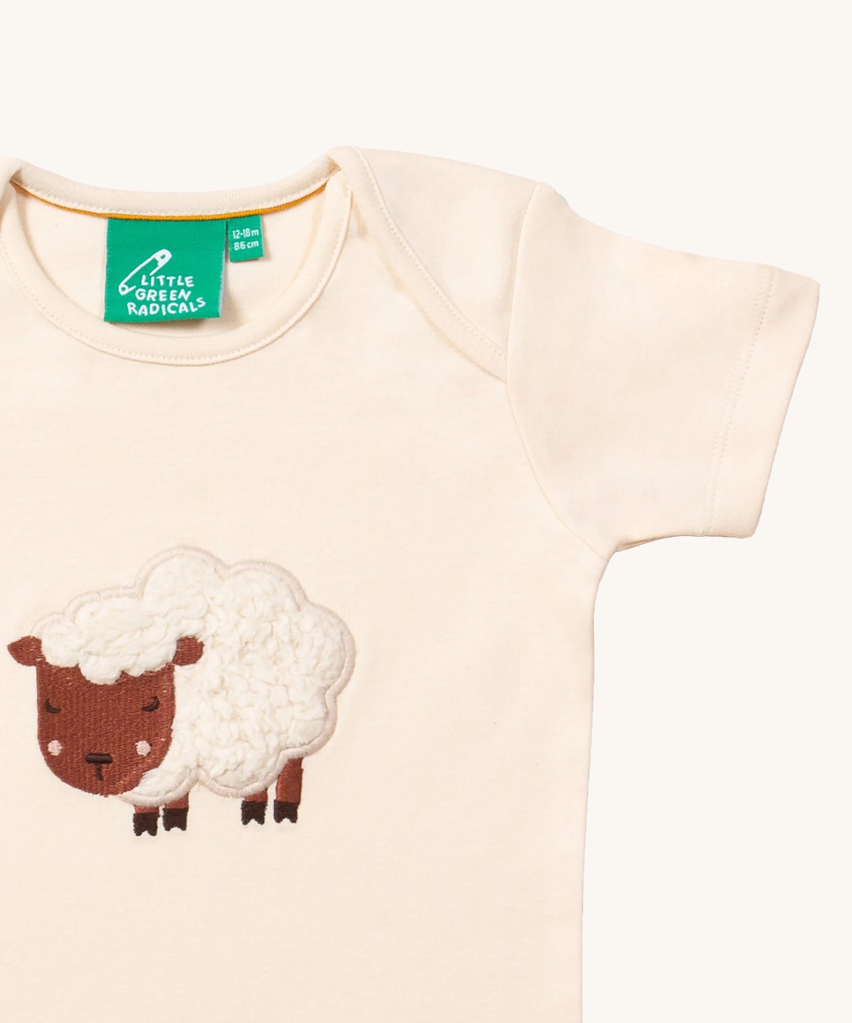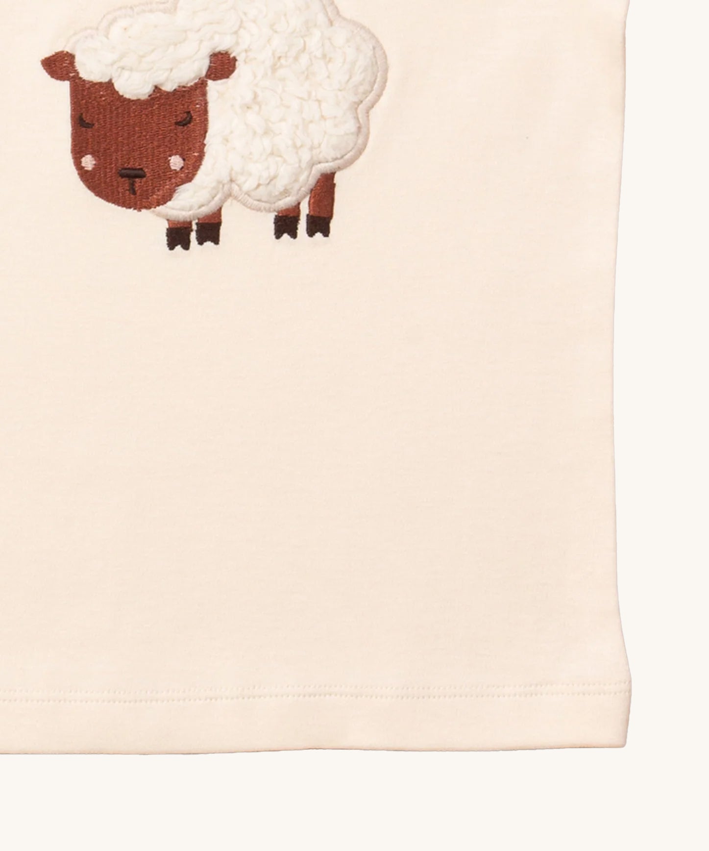 LGR Counting Sheep Applique Short Sleeve T-Shirt, in a cream fabric with a woolly sheep applique on the front