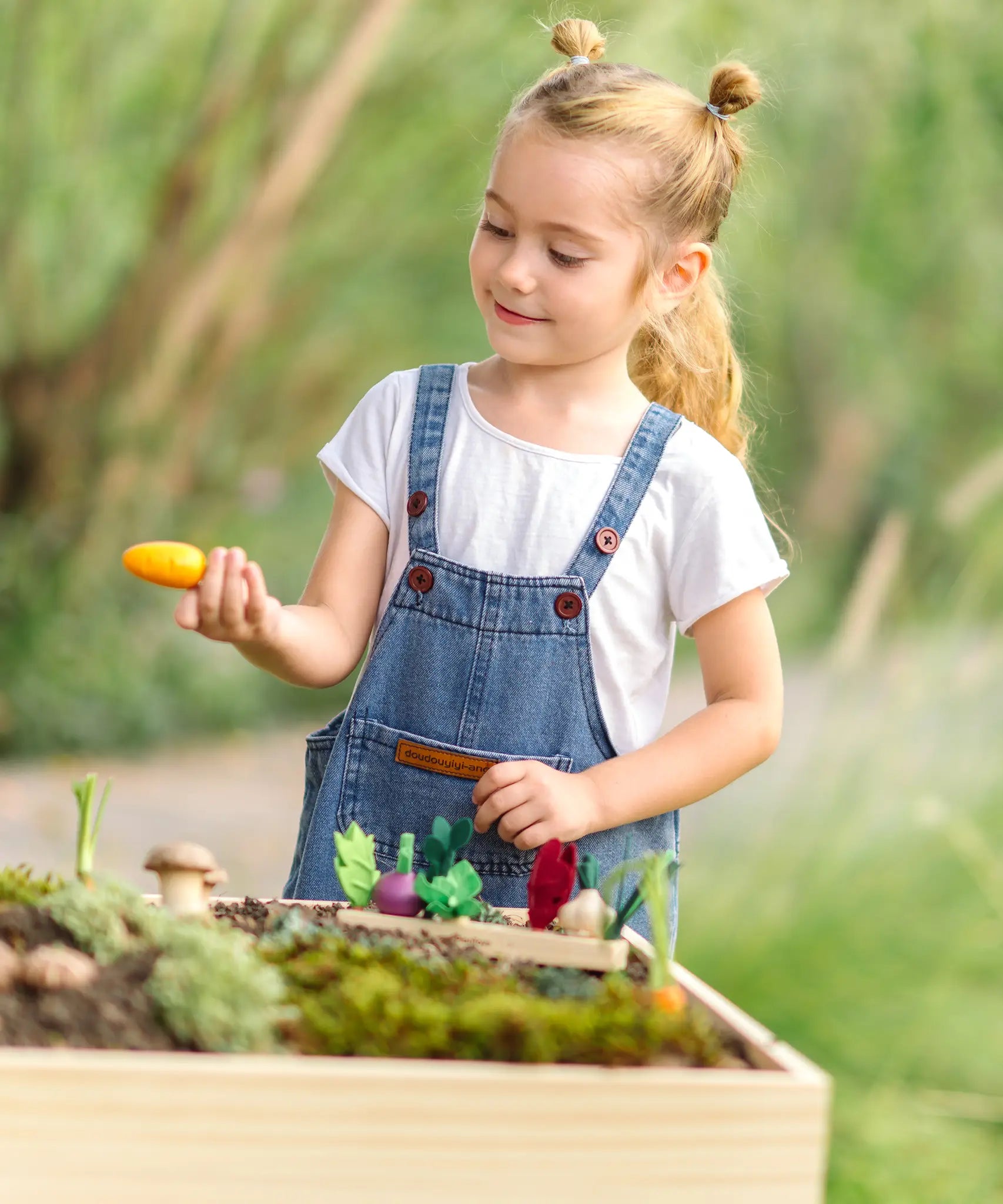 • Includes a wooden garden bed and 8 vegetable pieces