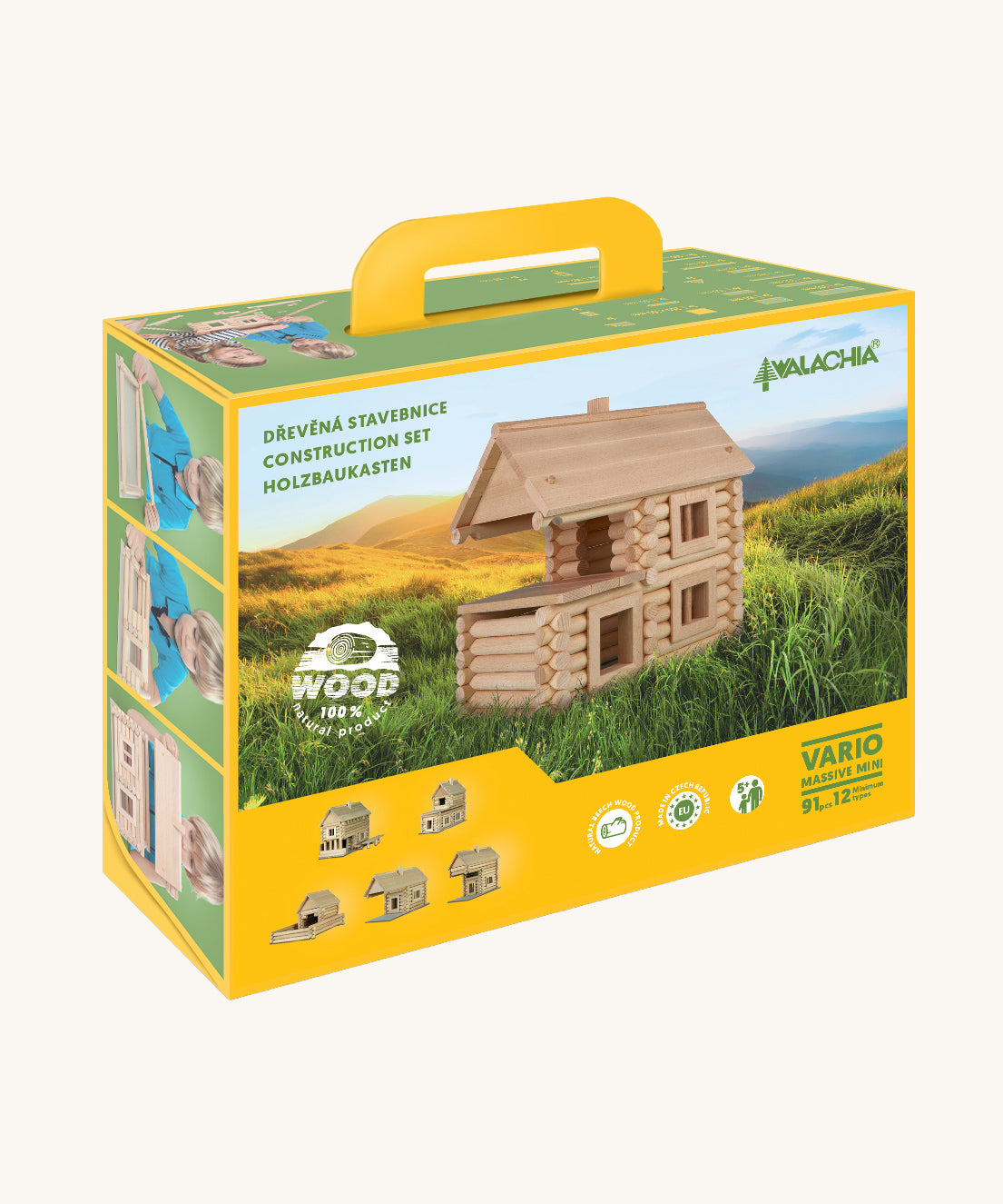Walachia, une équipe père et fils, fabrique des jouets éducatifs en bois et des kits de modélisme de qualité supérieure depuis 1991 en République tchèque, en utilisant du bois de hêtre et de pin durable d'origine locale. Ces kits encourageront une gamme de compétences STEM (sciences, technologie, ingénierie et mathématiques). Les kits Walachia Vario contiennent des bûches interconnectées pour construire une cabane en rondins de votre propre conception et peuvent être déconstruites et reconstruites. Les kits Walachia Hobby sont des kits de modélisme détaillés pour les enfants plus âgés (8 ans et plus), conçus pour être collés ensemble, avec des instructions de montage complètes, et une fois terminés, ils peuvent être utilisés pour accessoiriser vos petites scènes de jeu ou votre chemin de fer miniature. Collectionnez-les tous pour construire une ville alpine parfaitement dimensionnée.
