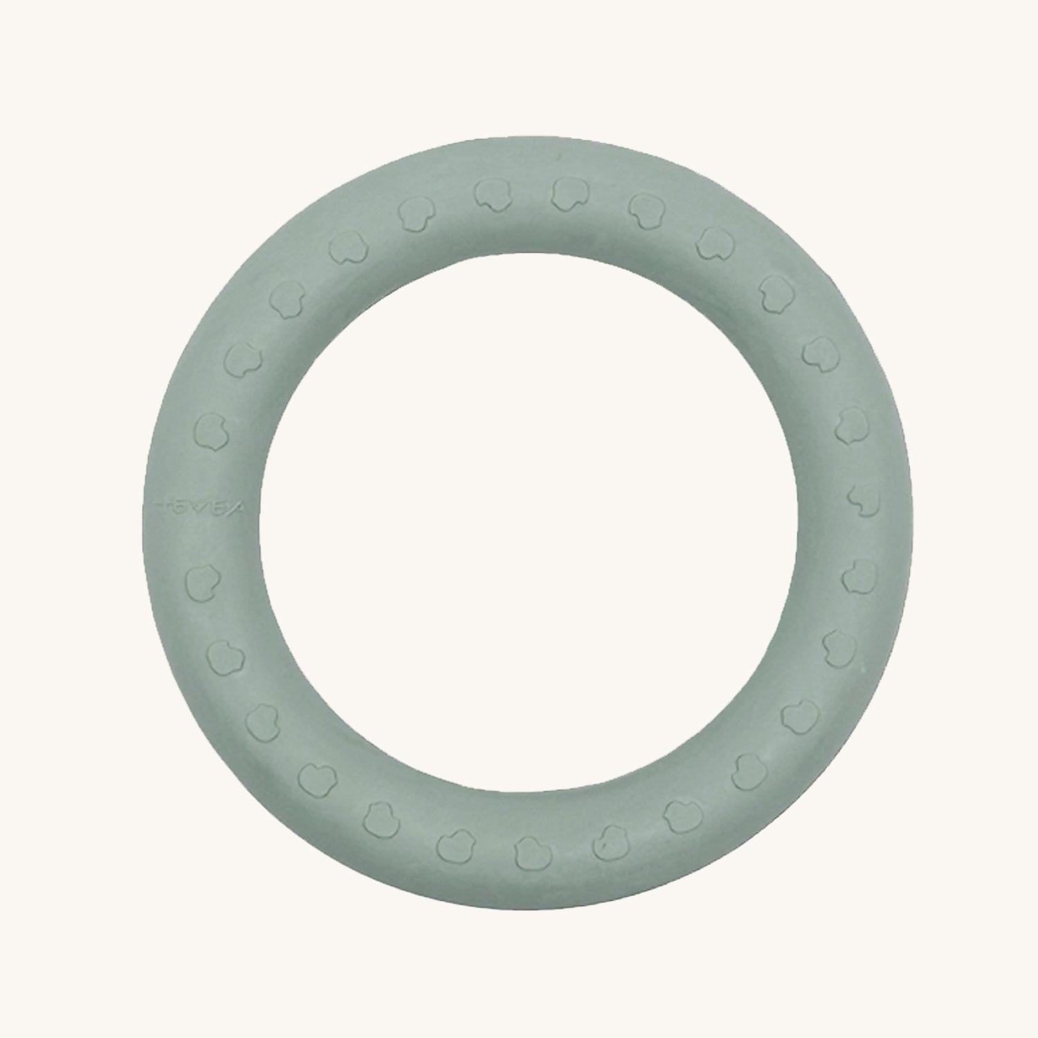 Hevea Kawan Baby Clutching and Teething ring using natural rubber in Seafoam colour, on a cream background