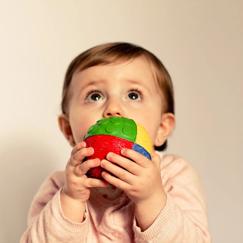 Amusez-vous dans la baignoire, jouez sur la terre ferme et apaisez les gencives douloureuses avec cette balle sensorielle pour bébé de Lanco, elle est parfaite pour rouler, lancer et apprendre à attraper ! Cette balle sensorielle pour bébé est fabriquée à partir de caoutchouc 100 % naturel provenant de l'hévéa et peinte à la main avec des colorants non toxiques de qualité alimentaire. Conçu pour encourager votre tout-petit à découvrir ses sens, le ballon comporte quatre sections, chacune peinte dans une couleur vive et vive, avec des textures et des formes différentes. Lorsqu'on la presse, la balle émet un léger grincement et elle est suffisamment légère et suffisamment petite pour que les petits bébés puissent la manipuler. Cela ferait un joli cadeau naturel pour nouveau-né, un excellent premier ballon pour les bébés et également bénéfique pour les adultes et les enfants atteints d'autisme, de TDAH, de TDA et de troubles sensoriels progressifs.