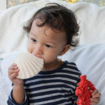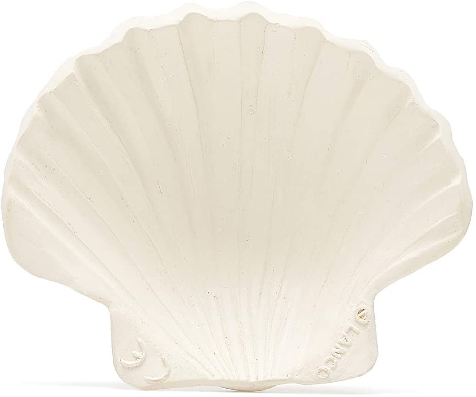 Cet anneau de dentition Lanco Clamp Shell sans plastique est fabriqué à partir de caoutchouc 100 % naturel et est peint à la main avec une peinture non toxique de qualité alimentaire dans de belles nuances de blanc et de crème. Les bébés trouveront les différentes textures apaisantes sur leurs gencives irritées et saisissant et explorant ses crêtes et sa texture imitée de coquillages.