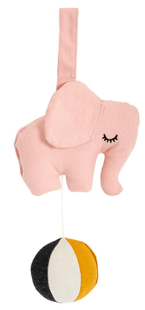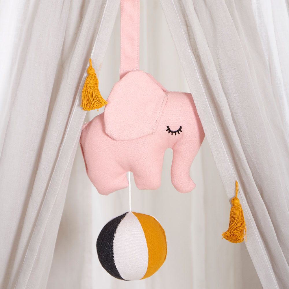 Endormez bébé avec une douce berceuse grâce à ce mobile éléphant rose endormi et suspendu.