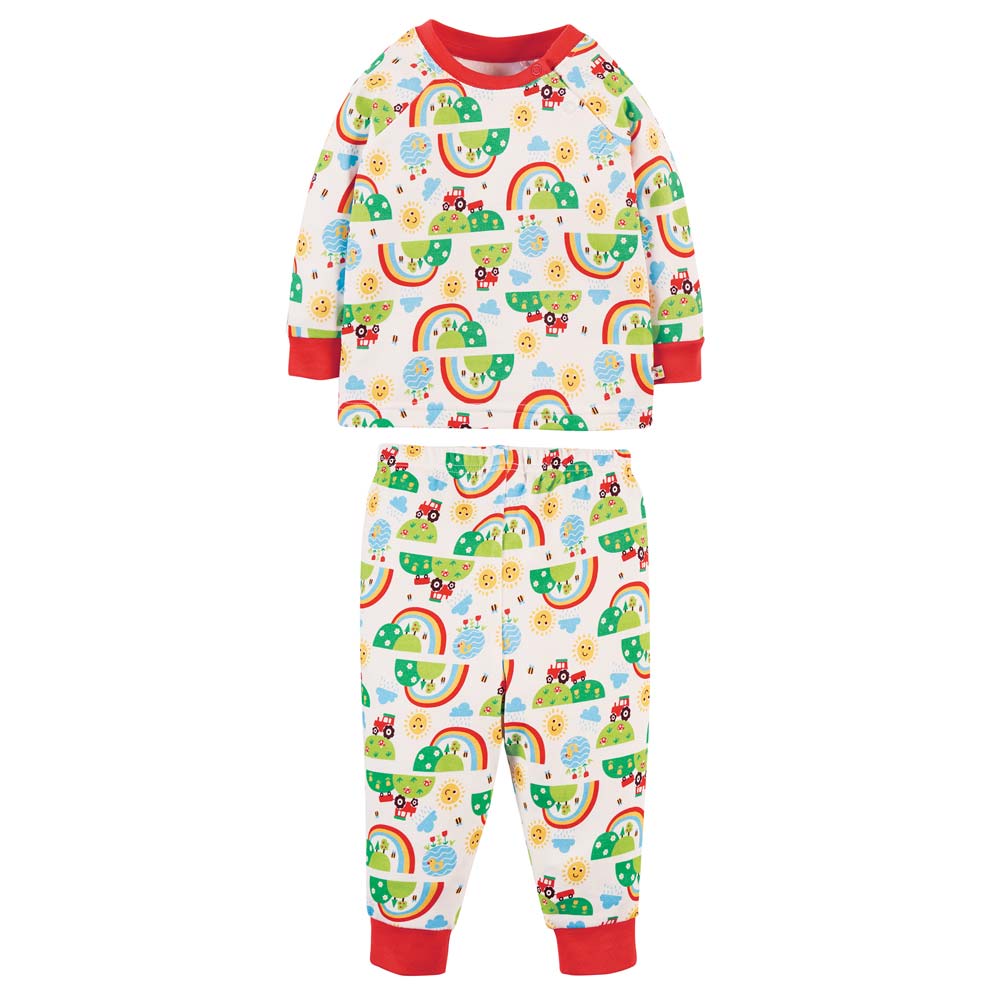 Les pyjamas Frugi Happy Days Polperro sont des pyjamas en coton biologique pour bébés et enfants dans l'imprimé amusant et classique Frugi Happy Days.