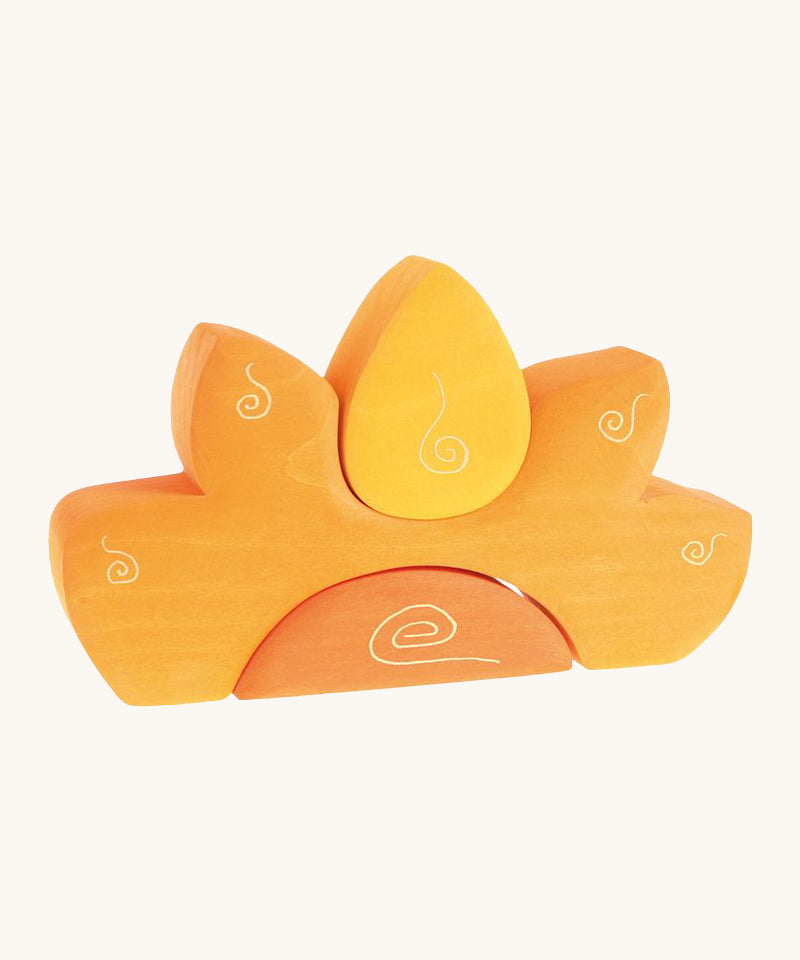 Une maison pleine de soleil. Ce joli ensemble de blocs lumineux a la forme du soleil levant et peut être une maison pour les nains, des blocs de jeu ou simplement un soleil brillant pour une scène de village. Jeu ouvert à partir des jouets de Grimm.