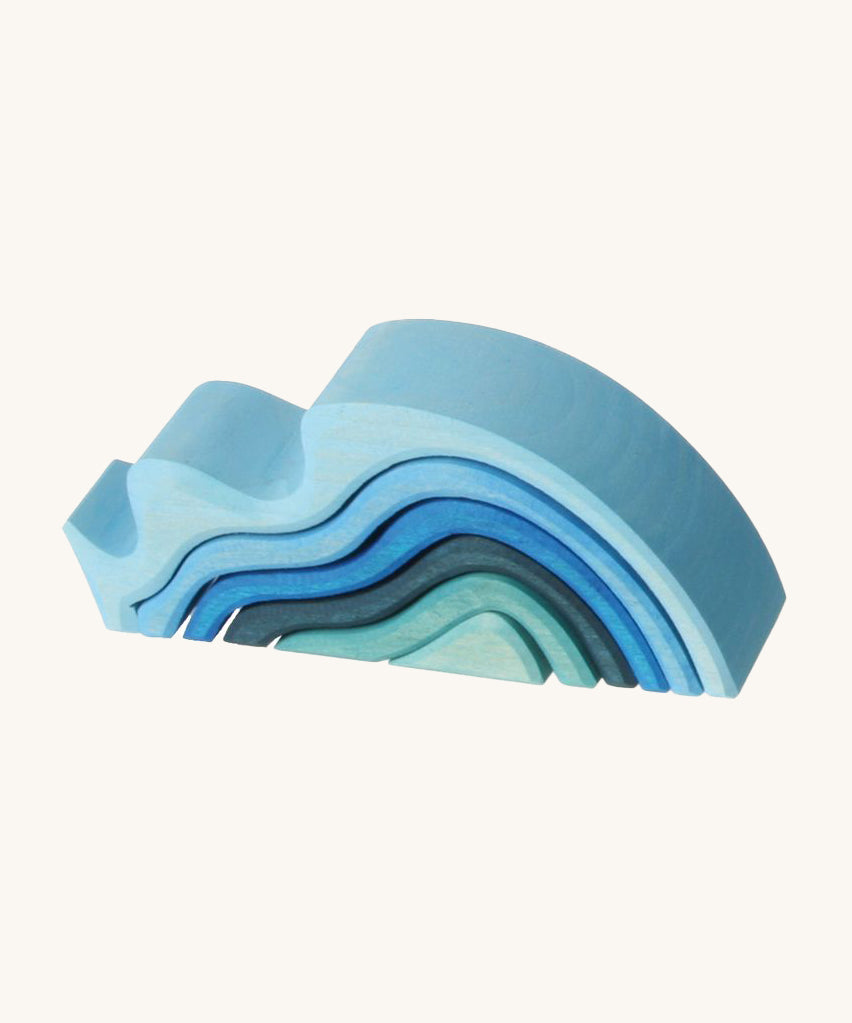 Éclaboussez-vous avec cet ensemble de mini vagues. Ce jouet naturel polyvalent est petit mais parfaitement formé : un ensemble de six vagues en bois, chacune d'une nuance de bleu différente. Séparez-les et placez-les sur une écharpe bleue pour créer une mer agitée, ou équilibrez-les les uns sur les autres pour former des vagues géantes. Ils sont parfaits pour jouer avec le yacht terrestre de Grimm et les jeunes enfants apprécieront empiler, trier et construire avec les vagues pendant des années. Ils constituent d'excellents tunnels pour les petites voitures, les clôtures de ferme et les terrains de jeux d'aventure pour les poupées, et égayeront n'importe quelle cheminée lorsqu'ils seront devenus trop grands. Les éducateurs Steiner adoreront ce jouet éducatif polyvalent qui peut être utilisé pour un jeu naturel d'une myriade de façons.