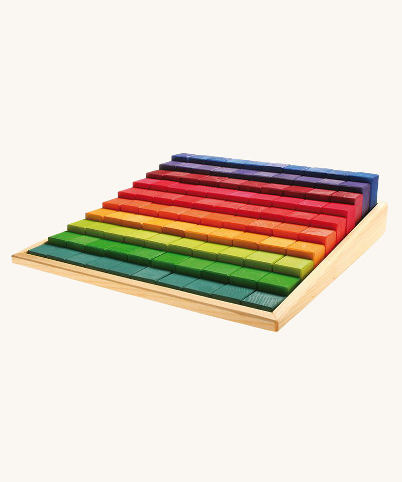 Cet ensemble de blocs de 100 pièces est un élément essentiel du kit pour les éducateurs à domicile et constitue un excellent jouet éducatif pour tout enfant. Les 100 blocs sont disposés dans un plateau en rangées de dix, chaque rangée étant plus haute que l'autre, donnant un effet gracieux lorsqu'elles sont exposées. Ils sont fantastiques pour compter et apprendre les bases des mathématiques : additionner, soustraire, multiplier et diviser. En plus d'être un excellent jouet mathématique en bois, il sert également de jeu de blocs de construction qui peut être utilisé seul ou combiné avec d'autres blocs en bois de Babipur pour construire une ville ou créer des motifs, des formes et des paysages. Les enfants adoreront apprendre , jouez et construisez avec ces magnifiques blocs disponibles dans une gamme de couleurs arc-en-ciel.