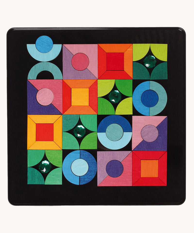 Apprendre vos formes est amusant avec cet ensemble d'aimants en contreplaqué de 64 pièces de Grimm's. Le puzzle magnétique est assemblé selon un motif géométrique de triangles, de carrés et de cercles, mais les pièces colorées peuvent être utilisées pour créer absolument n'importe quoi : des motifs, des paysages, des animaux et bien plus encore. Les pièces de contreplaqué à dos magnétique sont présentées dans une boîte de conserve qui peut être utilisée pour jouer, ce qui en fait un jouet de voyage idéal. Alternativement, égayez votre cuisine avec Grimm's sur votre réfrigérateur ! Ce jouet magnétique est un excellent moyen de stimuler la créativité et d'encourager la motricité fine. Un fantastique jouet éthique pour les enfants plus âgés – que les adultes adoreront aussi.