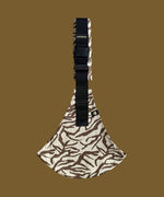 Wildride toddler carrier in black zebra stripe. A 100% cotton seat stylish hip carrier for babies in a zebra skin design