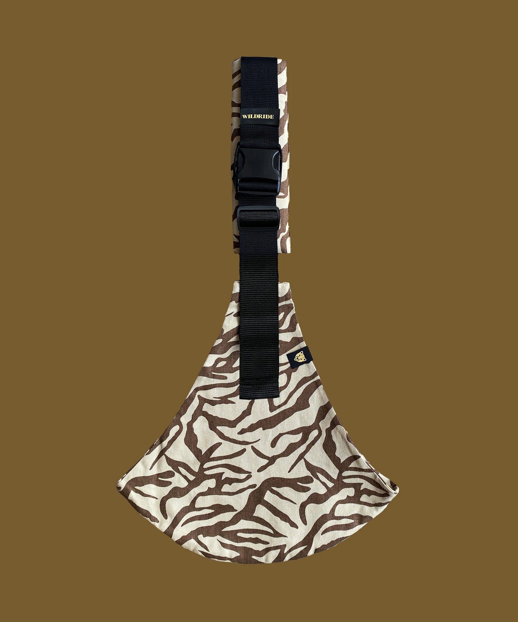 The Wildride toddler carrier in a brown zebra print design