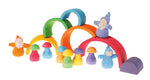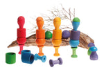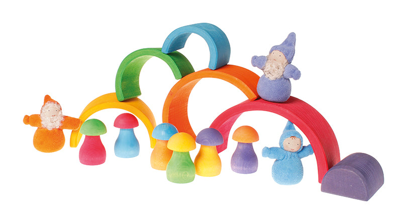 Grimm's Rainbow Mushrooms Sorting Game, the pieces have been stacked on top of each other to create little towers.