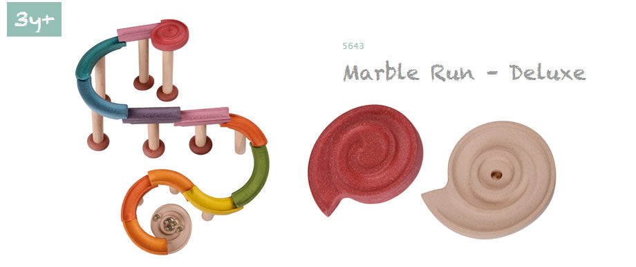 PlanToys deluxe Wooden Marble Run on a plain background.