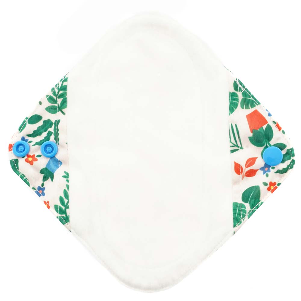 The Fern Light Pad has a stay-dry bamboo fleece layers which sits next to your skin, an organic cotton layer for added absorbency, and a printed waterproof PUL backing with anti-slip design, making it super absorbent while providing a super slim fit. This cloth pantyliner is shaped to give maximum coverage where you need it most. With a super slim fit and secure poppers on the wings, these washable period pads will stay in place - simply popper them into position around your knickers. Change every 4-6 hours or as required - suitable for overnight use. Don't forget to team up your pad with a matching Fern Wet Bag!