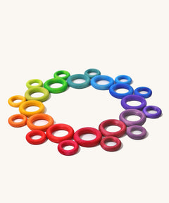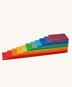The possibilities for play with this wonderful wooden rainbow set are endless. - it really can be enjoyed over and over without being tired of. Tiny tots will enjoy sorting the 11 semi-circle pieces by size to make a rainbow and older children can use them to create beautiful patterns and designs. Combine with the Grimm's Large Rainbow for an extra-special toy set and make your own rainbow dolls' houses and colourful structures that really can be quite impressive. You can also make towers and all sorts of structures using wooden blocks too. Steiner educators, nurseries and playgroups will love how this natural toy can be used throughout the day in numerous ways.