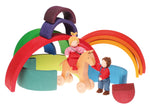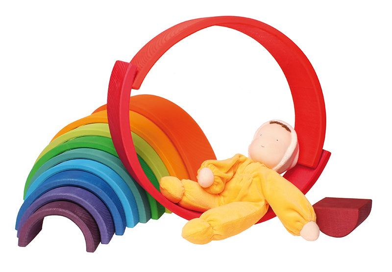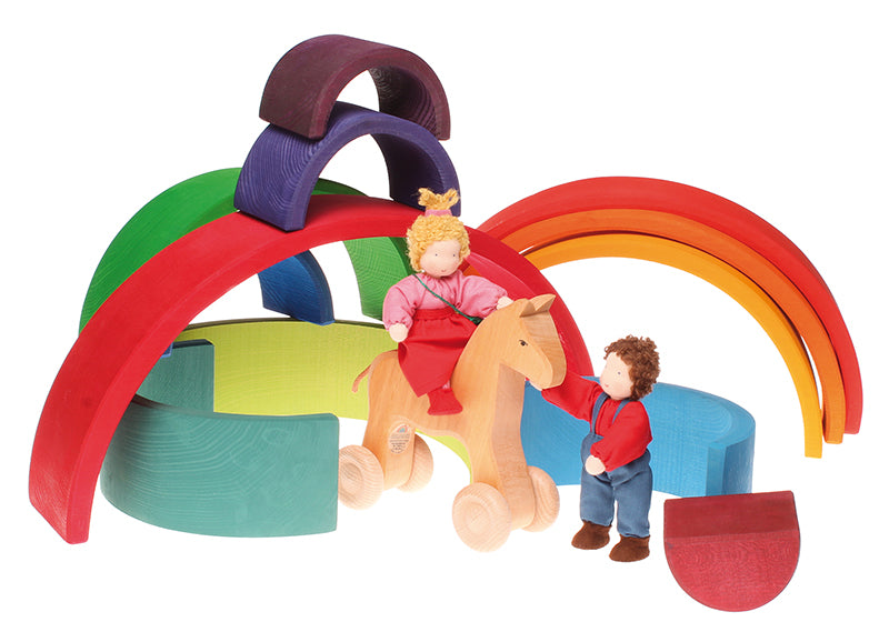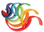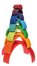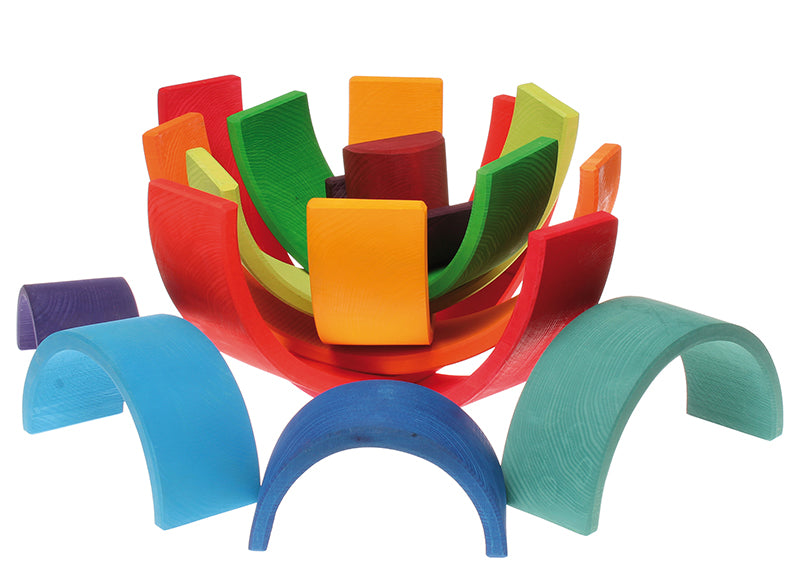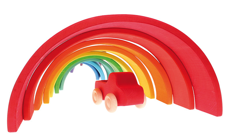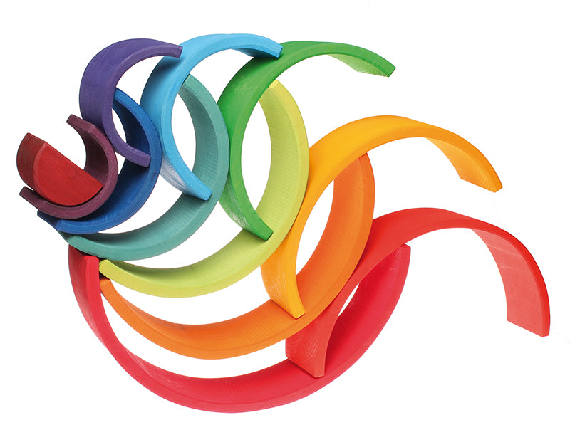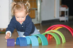 This enormous wooden rainbow might just be the most amazing thing in your playroom. The possibilities for creative play are endless with this gorgeous wooden rainbow and the 12 blocks can be used in a myriad of ways - as tunnels and bridges for cars, cots for baby dolls, animal shelters or farm fences. They are even big enough for small children to crawl through and can be spread out to make mermaid tails for their young owners, and balanced one on top of another to make elaborate sculptures. Steiner educators, nurseries and playgroups will love how this natural toy can be used throughout the day in numerous ways.