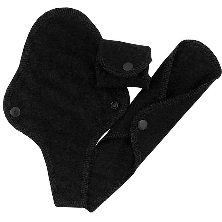 This pack of 3 Imse reusable Thong Panty Liners are made from soft and absorbent organic cotton with a hidden layer of breathable waterproof PUL. Thong shape with wings and poppers secure the pads in place around your thong knickers. 100% organic cotton is extra soft against sensitive and delicate skin areas. Choose from black or white to suit your style.